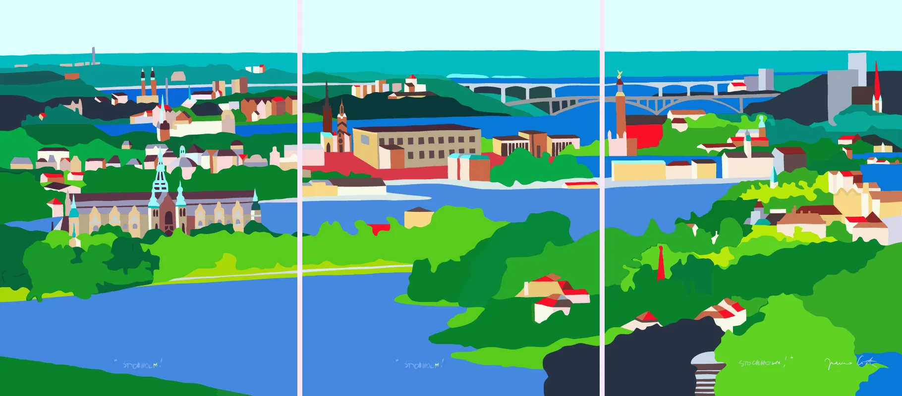 To celebrate the Stockholm Water Festival, an event to honor the Stockholm Water Prize, Franco painted a triptych of the city of Stockholm. During the festival, Franco and his wife met with President Bush in Stockholm. The silkscreens were sold in collaboration with the Svenska Dagbladet.